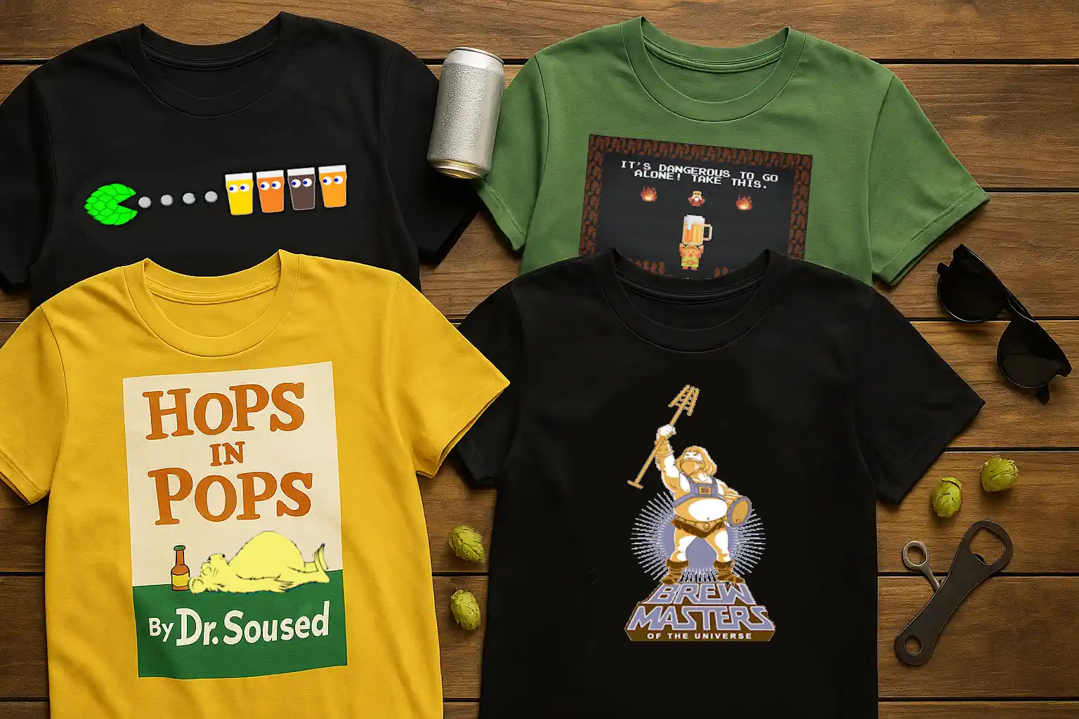 Your jokes are loud, your beer is cold, and your shirt? It’s doing most of the talking. These beer parody tees riff on everything from Pac-Man to Netflix and are guaranteed to get laughs—even if...